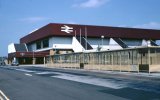 The station has changed over time, but still retains the 4 platform arrangement. There is space for a fifth. In these times there was a Red Star parcel office on platform 1 and facing the road.